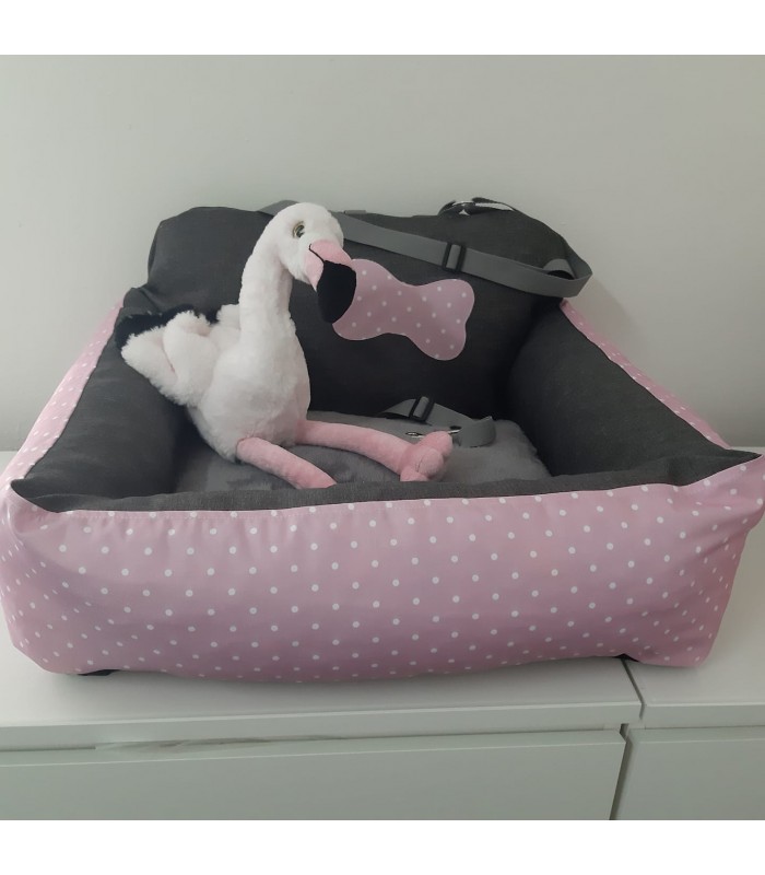 Zadní strana s otvory pro provlečení bezpečnostního pásu, pro stabilitu a bezpečí psa během jízdy