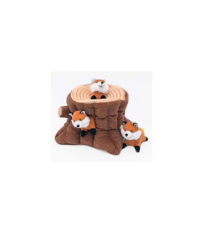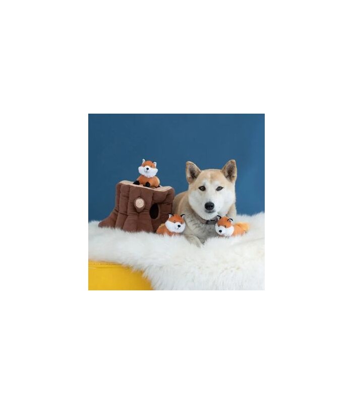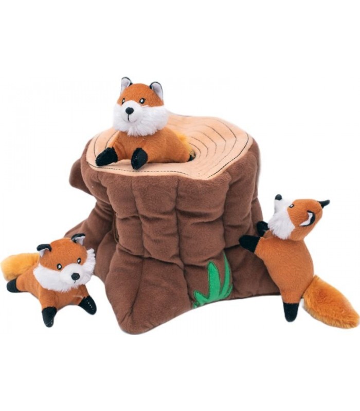 Do kmenu můžete kromě plyšových liščat schovat i nejrůznější dobroty nebo jiné pejskovy hračky.
