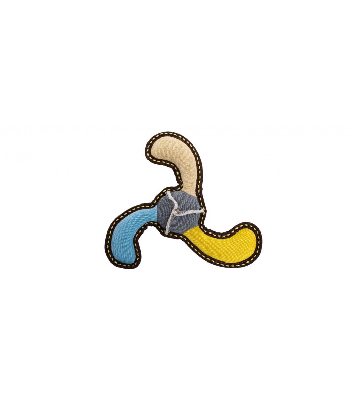 Bumerang HipHop Dog, 27 cm, robustní aport pro psy, tkaná látka, béžová/modrá/žlutá