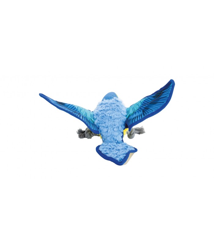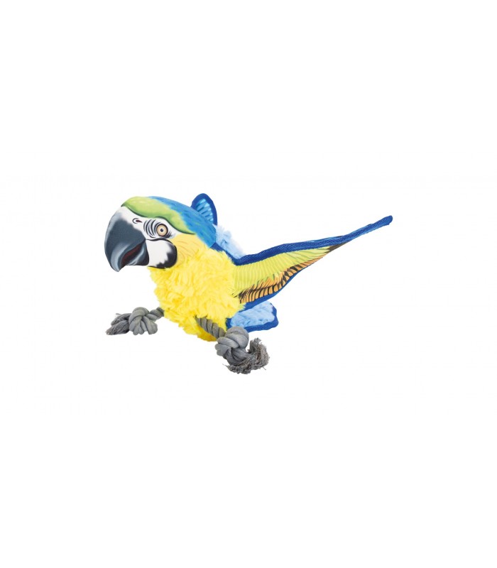 Ara Ararauna papoušek na laně HipHop Dog, 35 cm, robustní hračka pro psy, žlutá/modrá